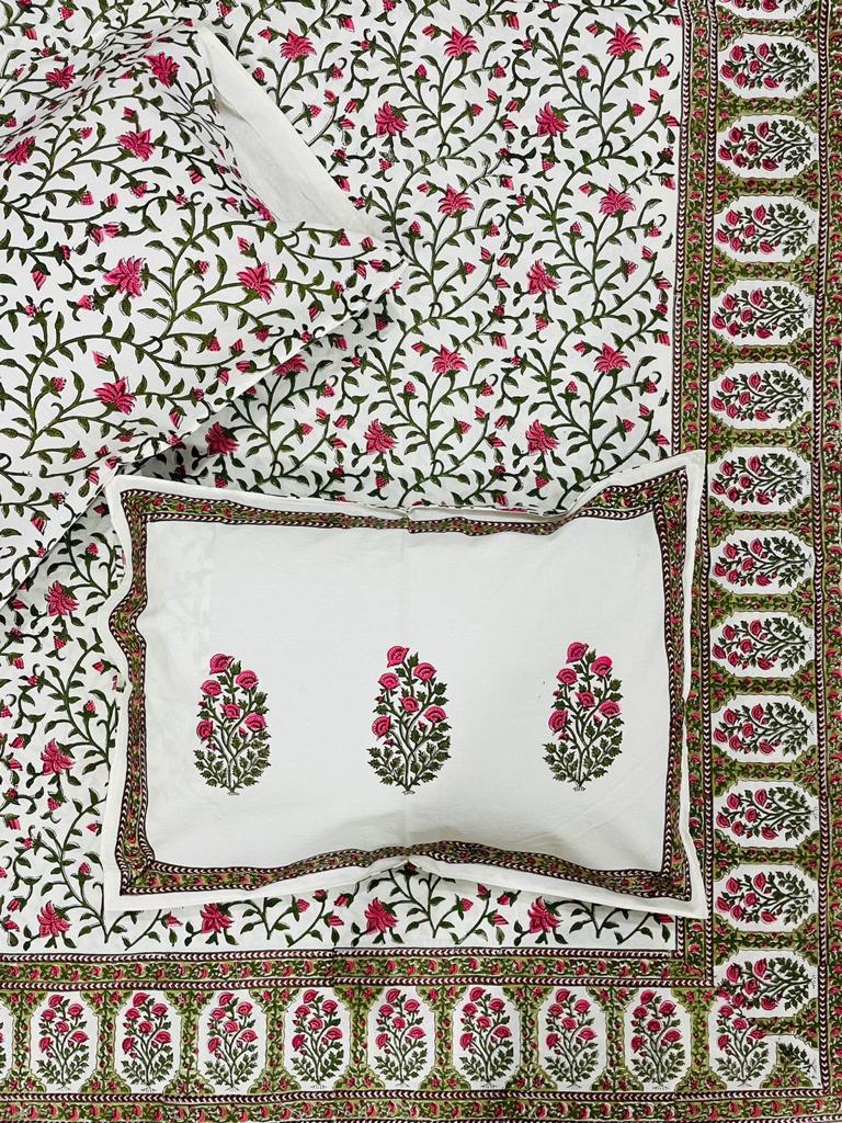 Handblock Printed Double Bedsheets with 2 Pillow Covers