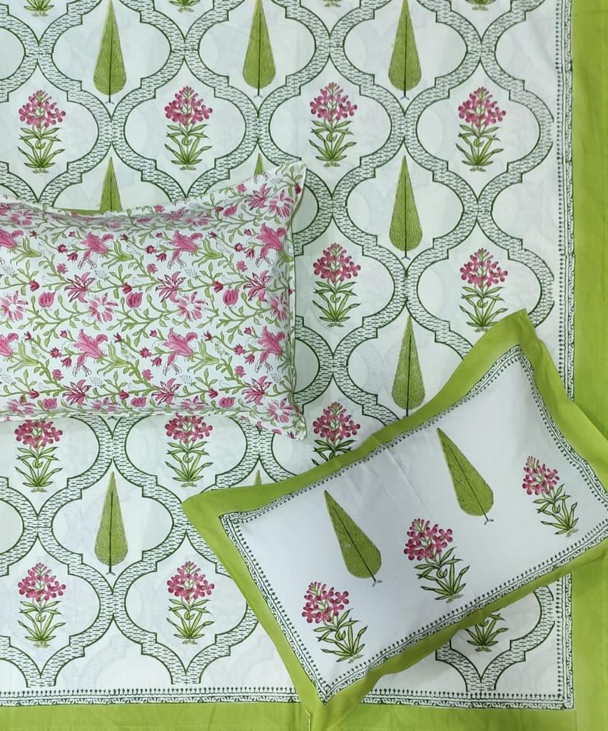 Handblock Printed Double Bedsheets with 2 Pillow Covers