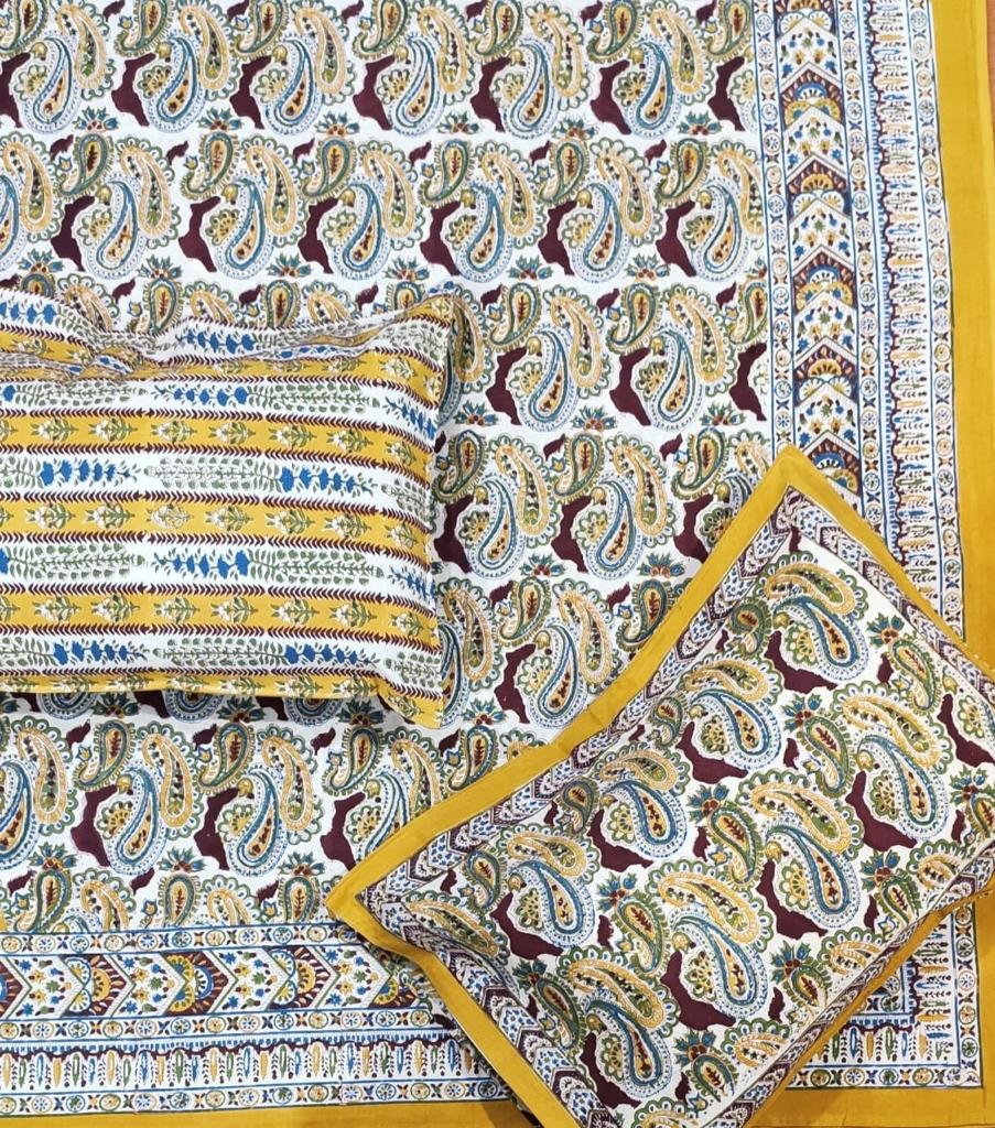 Handblock Printed Double Bedsheets with 2 Pillow Covers